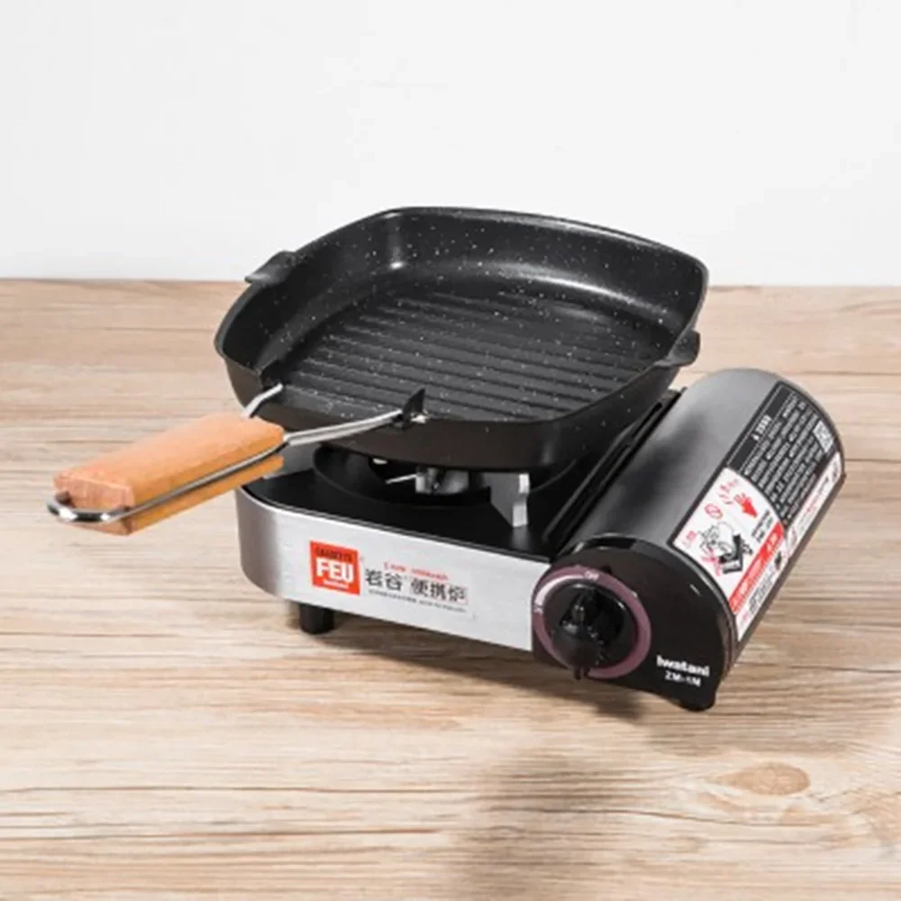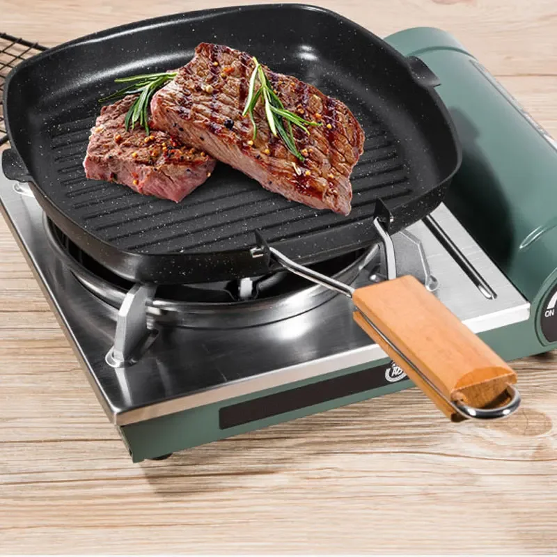 Versatile Frying Pan with Woodle Handle,Foldable Handle Square Grill Pan for Indoor& Outdoor Grill Nonstick Grill Pan for Steak