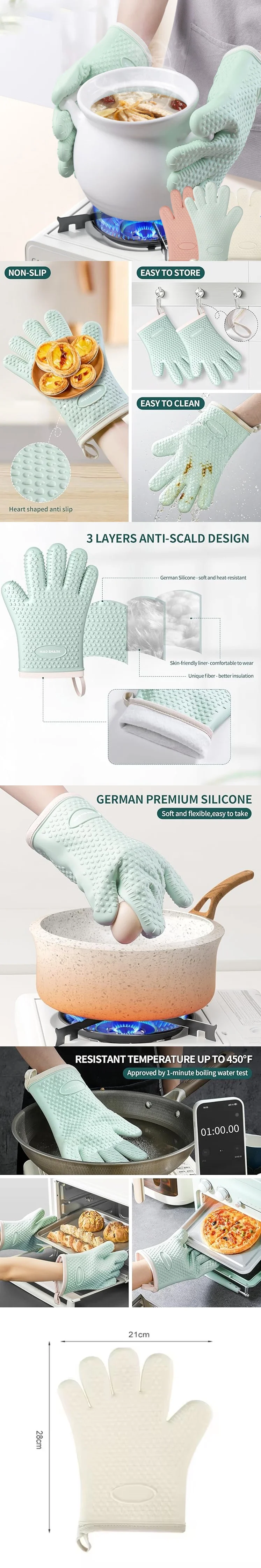 Instructions: Product: Gloves Material: Polyester Fiber/Silicone Size: As shown in the picture Usage: Anti scald gloves, heat-insulating, thickened silicone, kitchen oven, special baking, high temperature resistant, anti slip, and heat-resistant microwave oven; note Due to differences in measurement methods, positions, and fabrics, the data deviation during the stretching process is 1-2cm. The size chart is for reference only. 2. There may be color differences between different computer monitors. For more information, please refer to the actual product. 3. Please refer to the unit conversion: 1INCH=2.54CM or 1CM=0.39I If you need more purchases, please contact customer service for negotiation. Packaging includes 1 * Glove